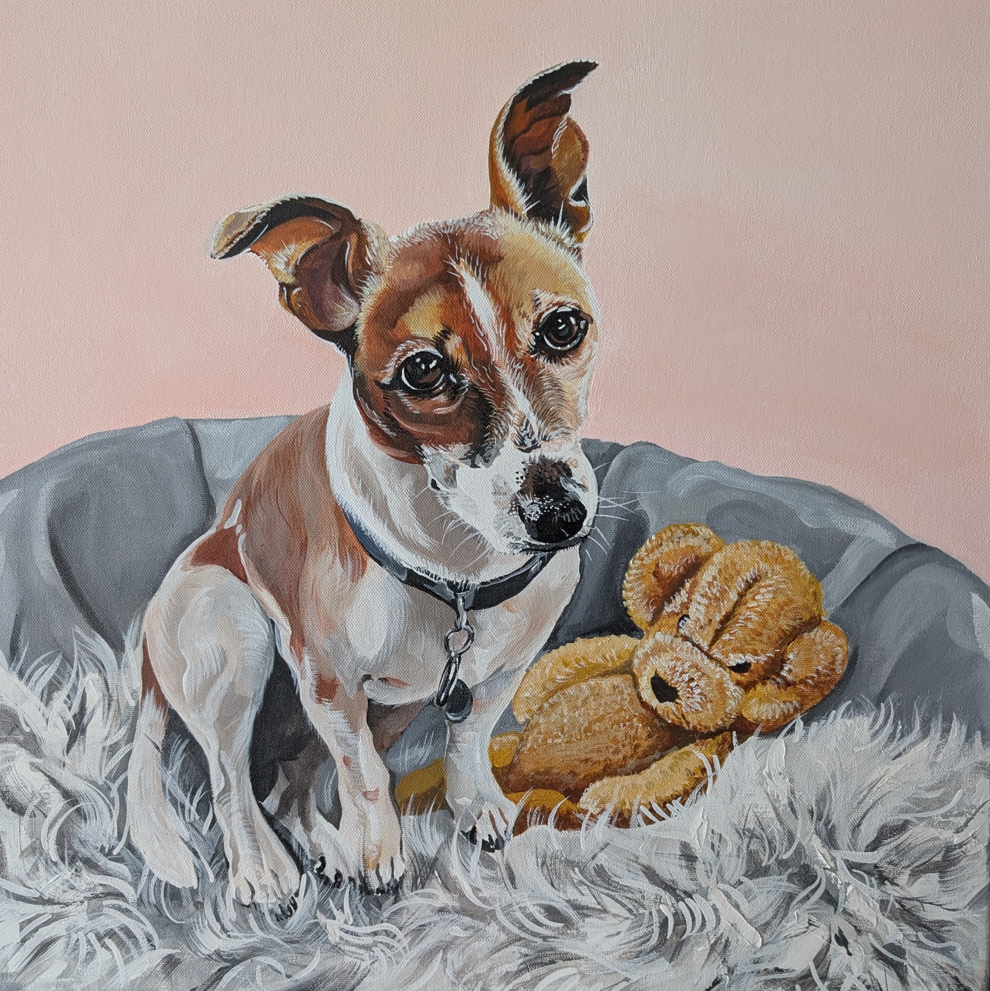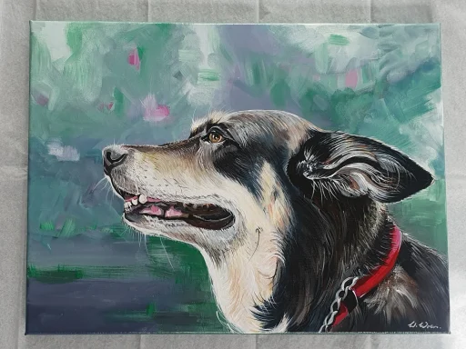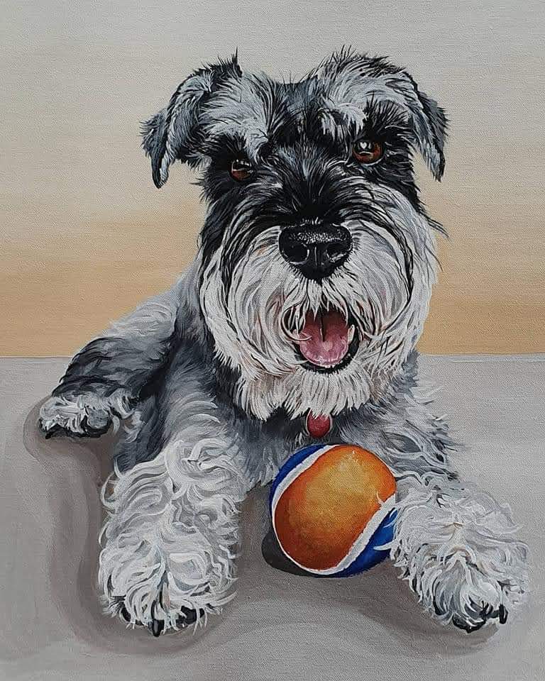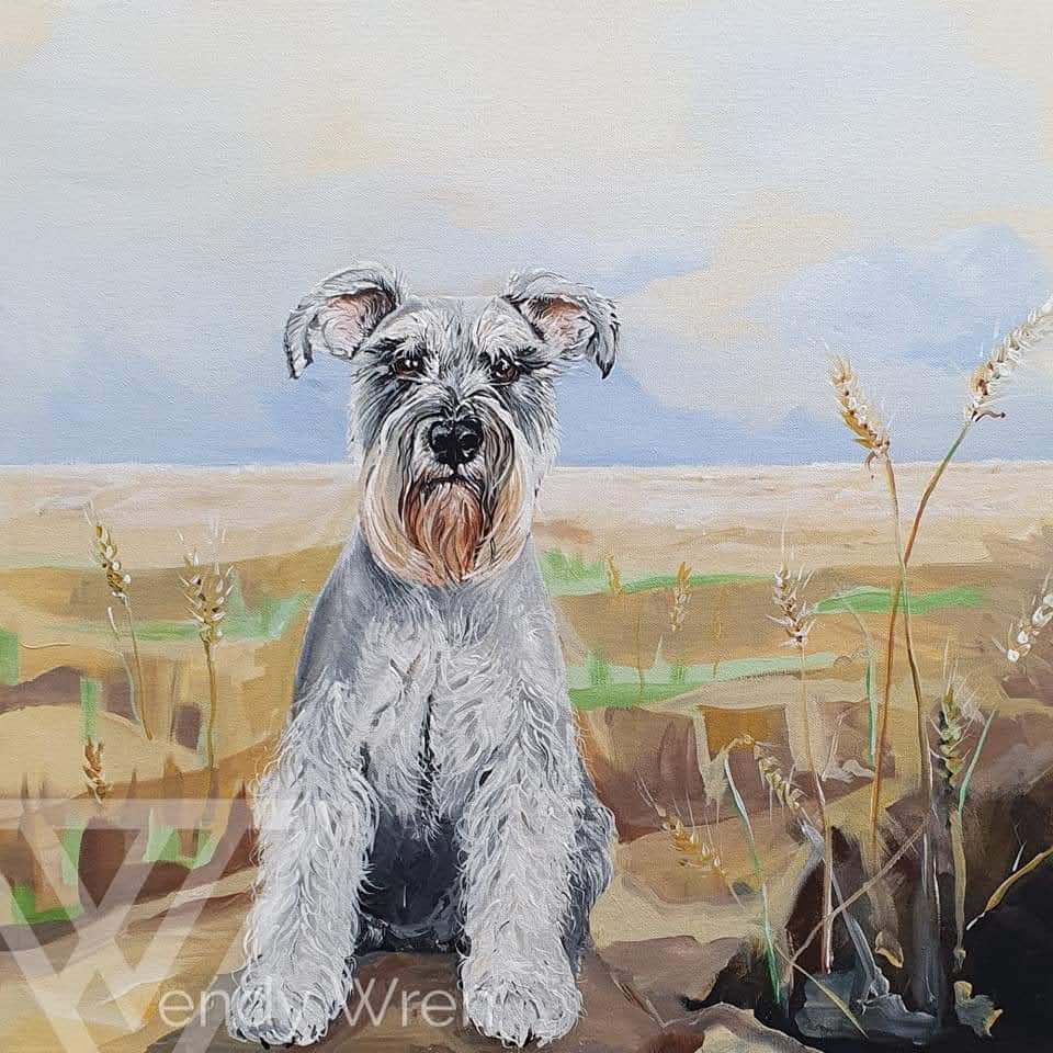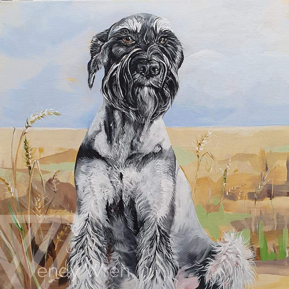 Wendy is a well established pet portrait Artist and has two beautiful Schnauzers that have inspired her to paint commissioned portraits for the last seven years. If you wish to commission her to paint your precious pet, then please contact her and she will send you a price list. You can then send her lots of photos and a name plus a description, which always helps Wendy to capture their unique personality . A composition is decided between you and the artist and it can all go ahead with a 50% deposit.